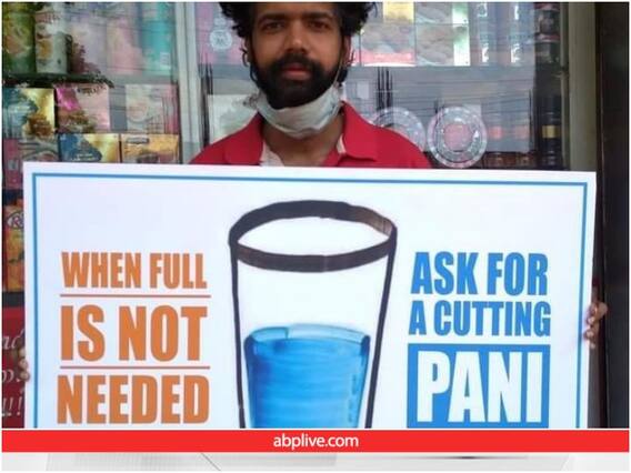 सोशल मीडिया पर शेयर की गई आईएएस अधिकारी अवनीश शरण की पोस्ट में दिख रही तस्वीर में एक शख्स हाथों में तख्ती लिए खड़ा नजर आ रहा है. जिसमें पानी बचाने की बात कही गई है. तख्ती में 'जब फुल की जरूरत न हो, तो एक कटिंग पानी की मांग करें' लिखा हुआ है. इस तस्वीर को पोस्ट करते हुए कैप्शन में आईएएस अधिकारी अवनीश शरण ने लिखा 'होटल या रेस्तरां में आधा गिलास पानी लें. जब आवश्यक हो तभी अधिक मांगें.'