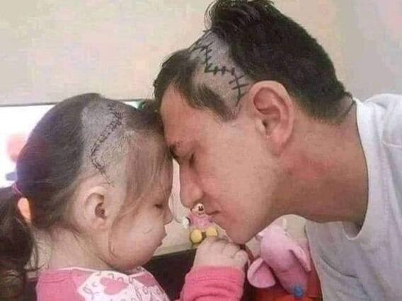 दरअसल, इस वायरल तस्वीर (Viral Image) में आप देखेंगे कि एक शख्स अपनी बेटी के साथ खेल रहा है, वह उसे प्यार कर रहा है. अचानक देखने पर आपको लगेगा कि इन दोनों ने इतना अजीब हेयर स्टाइल (hair Style) क्यों बना रखा है, लेकिन तस्वीर (Image) को गौर से देखेंगे तो आपको लड़की के सिर पर टांगे लगे दिखेंगे, यह टांके इसलिए लगे हैं क्योंकि लड़की की ब्रेन सर्जरी (Brain Surgery) हुई है. वहीं दूसरी ओर उसके पिता को देखेंगे तो आपको कोई टांका नजर नहीं आएगा. अब आपके मन में सवाल उठेगा कि आखिर इस शख्स ने हूबहू बेटी जैसा हेयरस्टाइल क्यों रख रखा है. इसी सवाल का जवाब इस तस्वीर की जान है.