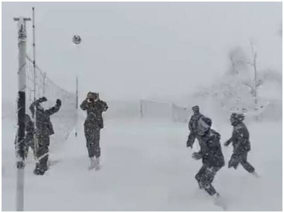 हाल ही में एक वीडियो सोशल मीडिया पर सामने आया है, जिसमें भारतीय सेना के जवानों को कश्मीर में हो रही भारी बर्फबारी के बीच आराम से वॉलीबाल खेलते देखा जा रहा है. सोशल मीडिया पर वीडियो को आईएएस अधिकारी अवनीश शरन द्वारा ट्विटर पर शेयर किया गया है. वीडियो में सैनिकों को बर्फ से ढके वॉलीबाल कोर्ट पर लगातार हो रही भारी बर्फबारी के बीच मस्ती से अपना गेम खेलते देखा गया है.