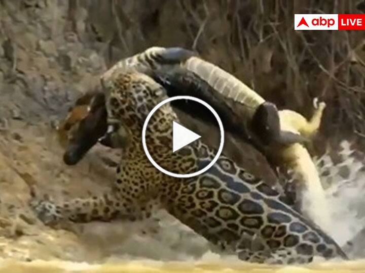 इस वीडियो में एक जगुआर नदी के किनारे एक मगरमच्छ का शिकार करते हुआ दिखाई दे रहा है. आप वायरल हो रहे वीडियो (Viral Video) में देख सकते हैं जगुआर सही समय का इंतजार करता है और फिर अचानक ही नदी के अंदर मगरमच्छ पर हमला कर देता है.