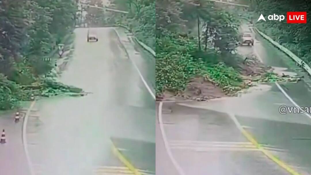 सोशल मीडिया पर आए दिन आप तरह-तरह के वीडियो वायरल होते हुए देखते होंगे. इनमें से कई वीडियो ऐसे होते हैं. जिन्हें देखने के बाद आप हैरान रह जाते हैं. ऐसा ही एक वीडियो इन दिनों सोशल मीडिया पर वायरल हो रहा है. वायरल हो रहे इस वीडियो में आपको सड़क पर एक गाड़ी आई हुई दिखाई देती है. शुरुआत में वीडियो समान्य लगती है. लेकिन थोड़ी देर बाद वीडियो में आपको सड़क के लेफ्ट साइड से पेड़ पौधे और जमीन का मलबा बीच रोड पर आता हुआ दिखाई देता है.