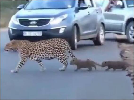 हाल ही में एक ऐसा ही वीडियो सोशल मीडिया पर सामने आया है, जिसने सभी के चेहरे पर मुस्कान ला दी है. इस वीडियो में जंगल के बीच से गुजर रही एक सड़क पर वाइल्ड लाइफ का बेहतरीन नजारा देखा जा रहा है. जिस दौरान एक मादा तेंदुआ अपने दो बच्चों के साथ नजर आ रही है. जिसमें तेंदुए के बच्चे अपनी मां को किसी इंसानी बच्चे की तरह ही परेशान करते देखे जा रहे हैं. जिसे देख यूजर्स काफी खुश दिख रहे हैं.