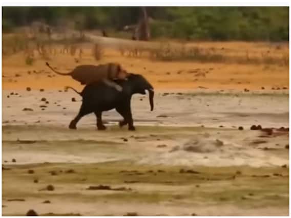 यूट्यूब पर पोस्ट किए गए इस वीडियो में आप एक हाथी के बच्चे को अकेला घूमता देखेंगे. तभी अचानक शेर आ जाता है और उस पर हमला करता है. जंगल में जानवर अपने पेट की आग शांत करने के लिए दूसरे जानवर का शिकार करते हैं.