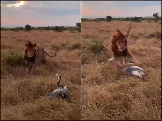 Sher Ka Video: शेर को उसकी ताकत और शिकार करने की चपलता की वजह से ही "जंगल का राजा" होने की ख्याति प्राप्त है. ऐसा अधिकतर देखा गया है कि शेर अपने शिकार को कभी भी हाथ से नहीं जाने देता है और ऐसा आपने शायद ही कभी देखा होगा कि शेर किसी अन्य जानवर से डर जाए और अपने कदम पीछे खींच ले. वायरल हो रहे इस वीडियो में आपको ऐसा ही अनोखा नजारा देखने को मिलेगा, जिसमें शिकार की तलाश कर रहे शेर को एक पक्षी दिखाई देता है और जैसे ही वो उसको दबोचने जाता है वैसे ही कुछ ऐसा होता है कि शेर घबरा जाता है.