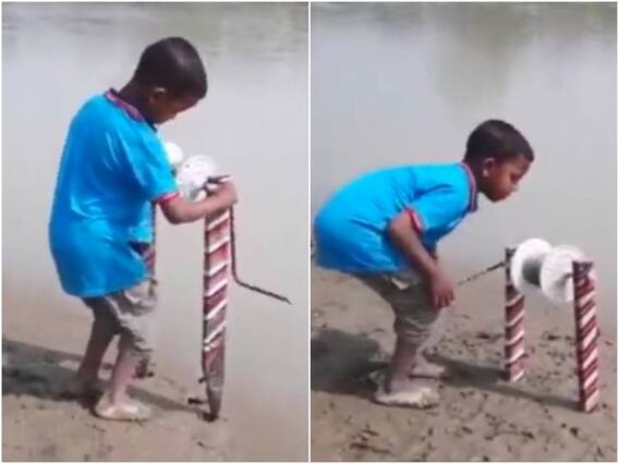 वायरल हो रहे वीडियो को सोशल मीडिया के कई प्लेटफॉर्म पर पोस्ट किया जा रहा है. जिसे ट्विटर पर द बेस्ट नाम के एक पेज ने शेयर किया है. इस वीडियो में बच्चा एक तालाब के पास आकर अपने जुगाड़ू यंत्र को फिट करता है. दरअसल बच्चे ने जुगाड़ लगाकर लकड़ी के दो लट्ठों के बीच मांझे से जुड़ी एक घिर्री को फिट किया है. वह तालाब किनारे लकड़ी के दो लट्ठों को ठोक कर जमीन में मजबूती से घट देता है. जिससे की मछली के पकड़ने पर उसे ज्यादा जोर ना लगाना पड़े.