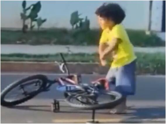 Trending Video: सोशल मीडिया (Social Media) पर एक बच्चे का मजेदार वीडियो तेजी से वायरल हो रहा है. आपने अक्सर बच्चों को साइकिल (Cycle)) से गिरने के बाद रोते हुए देखा होगा, लेकिन ये बच्चा सबसे अलग है. साइकिल से गिरने के बाद इस बच्चे ने जो रिएक्शन दिया उसे देख हर कोई हैरान है. वाकई में ये बच्चा बड़ा होने के बाद किसी भी समस्या से बहादुरी से निपटेगा.