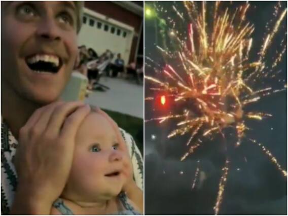 वायरल हो रहे इस वीडियो में आप एक बच्चे को देख सकते हैं, जो पहली बार आतिशबाजी को लाइव अनुभव कर रहा है. आतिशबाजी को देखना हर किसी को अच्छा लगता है, ठीक वैसे ही इस बच्चे को भी आतिशबाजी खूब पसंद आई. आतिशबाजी के शुरू होते ही बच्चे के चेहरे पर मुस्कान आ गई. आप देख सकते हैं कि पिता ने बच्चे के कान बंद रखे हैं, ताकि आतिशबाजी की जोरदार आवाज से बच्चे को किसी तरह का नुकसान ना पहुंचे.