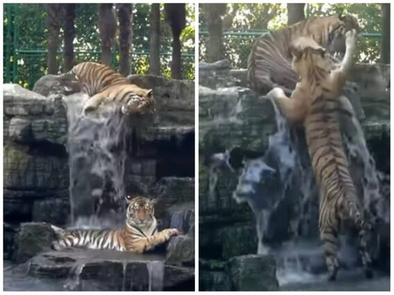 आमतौर पर कुछ लोगों कों जहां जंगल सफारी का आनंद लेते देखा जाता है. तो वहीं कुछ लोग शहरों में बने चिड़ियाघर में जंगली जानवरों को देखने जाना पसंद करते हैं. ऐसे में हाल ही में सामने आया वीडियो किसी चीड़ियाघर का दिख रहा है. जिसमें बाघ के बड़े शावकों को अपनी जिंदगी के क्वालिटी टाइम को स्पेंड करते देखा जा रहा है.