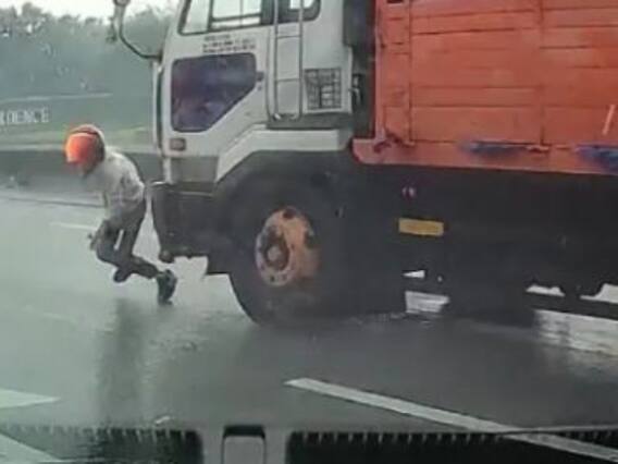वीडियो में देखा जा सकता है कि फिसलन भरी सड़क पर गिरने के बाद बाइक सवार उठता है और दौड़ता है. ठीक उसी वक्त ट्रक भी तेजी से आगे बढ़ रहा था. वो बिजली की रफ्तार से वहां से हटता है और ट्रक से टकराने से बच जाता है. ट्रक ड्राइवर बाद में ब्रेक मारकर रूकता है. मोटरसाइकिल सवार को बहुत ज्यादा चोटें नहीं आई और उसके एक्टिव होने की वजह से उसकी जान बच गई. ये घटना 24 जनवरी की बताई जा रही है. इस बीच फेसबुक पर डैशकैम फुटेज वायरल हो गया है जिसे 96,000 से अधिक बार देखा जा चुका है.