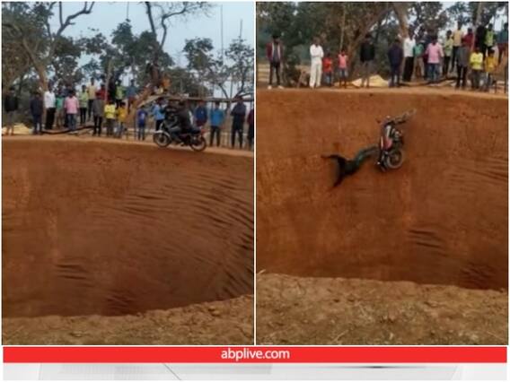 सोशल मीडिया पर हाल ही में सामने आई एक वीडियो में एक शख्स बाइक को गोल गहरे गड्ढे में लेकर जाते देखा जा रहा है. आमतौर पर यह शहरों में लगने वाले बड़े मेले के किसी 'मौत के कुंए' जैसा दिख रहा है. शख्स अपने स्टंट के तहत गड्ढे की दीवारों पर बाइक को चलाने की कोशिश करता है. वहीं गड्ढे के अंदर जाते ही शख्स का बैलेंस बिगड़ जाता है. जिससे वह हादसे का शिकार होकर सीधे गड्ढे के तल में गिर पड़ता है. जिसे देख यूजर्स की आंखें खुली की खुली रह जाती है.