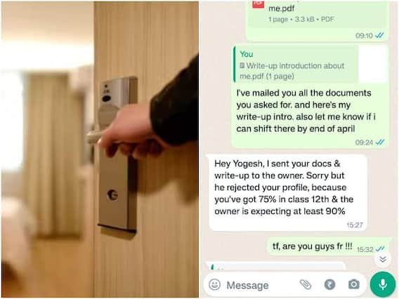 दरअसल व्हाट्सएप चैट में देखा जा सकता है कि ब्रोकर ने योगेश को बताया कि मकान मालिक ने उसे अपना घर किराए पर देने से मना कर दिया है, जिसका मुख्य कारण योगेश को उसके 12वीं कक्षा में 75% अंक पाना है. ब्रोकर का कहना है कि मकान मालिक कम से कम 90% की उम्मीद कर रहा है. फिलहाल स्क्रीनशॉट शेयर करते हुए शुभ ने लिखा 'मार्क्स आपका भविष्य तय नहीं करते हैं, लेकिन यह जरूर तय करते हैं कि आपको बंगलौर में फ्लैट मिलेगा या नहीं.'