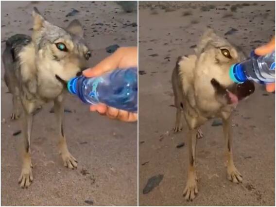 वायरल हो रहे इस वीडियो को सोशल मीडिया के कई प्लेटफॉर्म पर शेयर किया गया है. ट्विटर पर यह वीडियो @_B___S नाम के अकाउंट के साथ ही आईएफएस अधिकारी सुशांत नंदा ने भी पोस्ट किया है. वीडियो में एक भेड़िया रेगिस्तान से निकलकर वहां घूमने आए एक पर्यटक के पास आता है और वह शख्स उस भेड़िए की ओर अपनी पानी की बोतल बढ़ा देता है. जिससे गिर रहे पानी को भेड़िया लगातार अपनी जीभ से पीने लगता है.