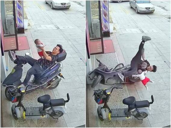 अक्सर माता-पिता अपने बच्चों को खुश रखने के लिए उनकी हर जिद को पूरा करते नजर आते हैं. वायरल हो रहे वीडियो में एक पिता सड़क किनारे स्कूटी की सीट पर लेट कर अपने बच्चे के साथ खेलते और उसे प्यार करते देखा जा रहा है. जिस दौरान अचानक ही उसका बैलेंस बिगड़ जाता है और स्कूटी के गिरते ही उसे भी गिरते देखा जा सकता है. स्कूटी से गिरते समय भी पिता अपने बच्चे को बचाने की भरसक कोशिश करते देखा जा रहा है.