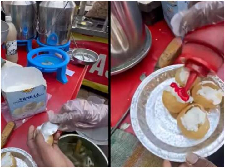 कुछ नया करने के चक्कर में कभी-कभी लोग इतनी विचित्र डिश बना जाते हैं, जिसका रियल डिश से कोई मैच ही नहीं होता है. इनोवेटिव आइटम की कैटिगरी में "आइसक्रीम पानी पूरी" का वीडियो अब इंटरनेट पर वायरल हो रहा है. वीडियो में एक शख्स पानी पूरी की पूरी में आइसक्रीम भरकर डिश बना रहा है, जिसके बाद वह स्वाद के लिए उस पर 3 अलग-अलग तरह के सिरप मिलाता है. आखिरी में, ये शख्स डिश को सेव से सजाया जाता है, जो अब खाने के लिए बिल्कुल तैयार है.