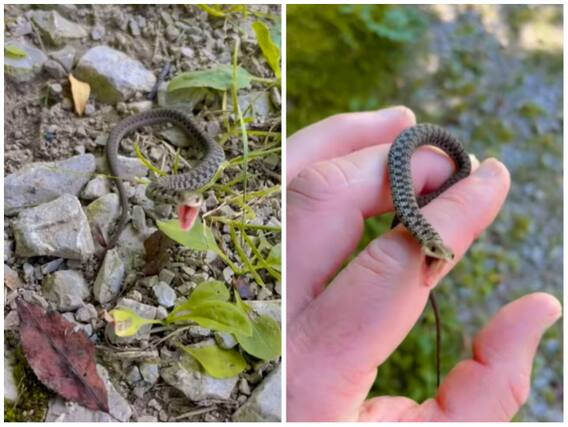 Snake Viral Video: इन दिनों आए दिन हमें सोशल मीडिया (Social Media) पर तरह-तरह के सांप (Snake) देखने को मिल रहे हैं. सांप अक्सर अंधेरी जगह पर जमीन के नीचे बिल बना कर रहते हैं. समय के साथ सांप का शरीर बढ़ते हुए कई मीटर तक लंबा हो सकता है. फिलहाल अंडे (Eggs) से निकलने के दौरान यह काफी पतले और छोटे होते हैं.