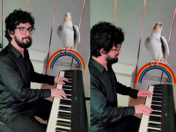 ट्विटर पर वायरल हुए इस वीडियो (Twitter Viral Video) में एक शख्स और उसका तोता नजर आ रहा है जो उसके साथी के रूप में उसका साथ दे रहा है. 8 सेकेंड की इस क्लिप में आपने देखा कि जैसे ही एक शख्स पियानो पर धुन बजाता है, एक स्टैंड पर बैठा ये पक्षी इसमें शामिल हो जाता है और पूरे सामंजस्य और खूबसूरती से गाने लगता है. शख्स और तोते के बीच इतना बढ़िया तालमेल देख किसी का भी दिमाग घूम जायेगा और उसका रिजल्ट तो बेहद शानदार है ही... हो सकता है ये वीडियो आप कई बार लूप में भी देखना पसंद करें. वीडियो के कैप्शन में लिखा गया है कि, ''सिंगिंग तोता'' (Singing Parrot).