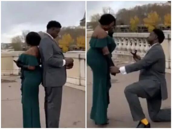 Proposal Viral Video: प्रपोजल को बेहद खास और यादगार बनाने के लिए लोग हर हद से गुजरने के लिए तैयार रहते हैं. घुटनों पर बैठे लड़के को लड़की के सामने अंगूठी या गुलाब की पेशकश करते वीडियो तो आपने खूब देखे होंगे. लेकिन आज हम जो खूबसूरत वेडिंग प्रपोजल हम आपके लिए लेकर आए हैं जिसे एक बार देखने के बाद आप बार बार देखना पसंद करेंगे. दरअसल, एक शख्स अपनी प्रेमिका का पेरिस घुमाने ले गया और वहां फोटोशूट के दौरान गुपचुप अंदाज में प्रपोज कर दिया.
