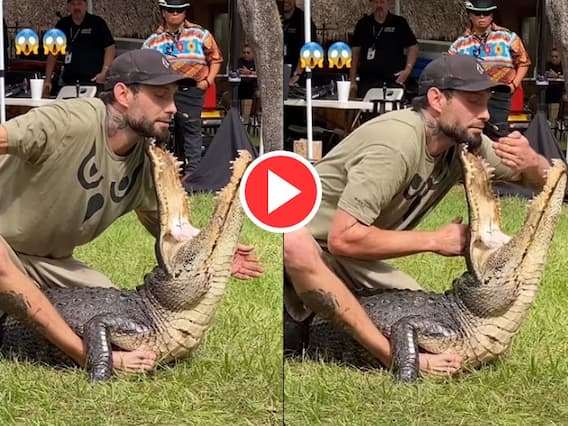 वीडियो में देखा जा सकता है कि शख्स मगरमच्छ की पीठ पर बैठा है. इसमें उसका चेहरा खतरनाक जीव के दांतों के ठीक ऊपर है. वीडियो का ये हिस्सा काफी डरावना लगता है. मगर शख्स इससे भी आगे बढ़कर ऐसा कुछ करता है कि आसपास खड़े लोग भी दातों तले उंगली दबाते रह गए. दरअसल मगरमच्छ के दांतों के ऊपर अपना चेहरा रखे शख्स धीरे-धीरे अपना हाथ ऊपर उठाता है.