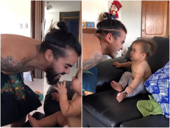 वायरल हो रही एक वीडियो में पिता को अपने बेटे के साथ खेलते देख सकते हैं. इस दौरान पिता के चेहरे पर घनी दाढ़ी और मूछ नजर आ रही है. वहीं पिता अपने बच्चे के साथ खेलते हुए एक तकीए की मदद से अपने चेहरे को छुपाते और उसे बच्चे को दिखाता है. जिसे देख बच्चा काफी खुश होता है और हंसते नजर आता है. फिलहाल इसके बाद कुछ ही देर में अलग ही नजारा देखने को मिलता है.