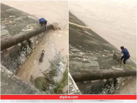 सोशल मीडिया पर सामने आई इस वीडियो में देखा जा सकता है कि एक शख्स खुद की जिंदगी को रिस्क पर रख कर एक कुत्ते की जान बचाने की कोशिश कर रहा है. वीडियो में शख्स को रस्सी के सहारे उफनती नहर के ऊपर आकर उसकी लहरों में फंसे एक कुत्ते को वहां से निकालने की कोशिश करते देख सकते हैं. जिसे देख यूजर्स दंग रह गए हैं.