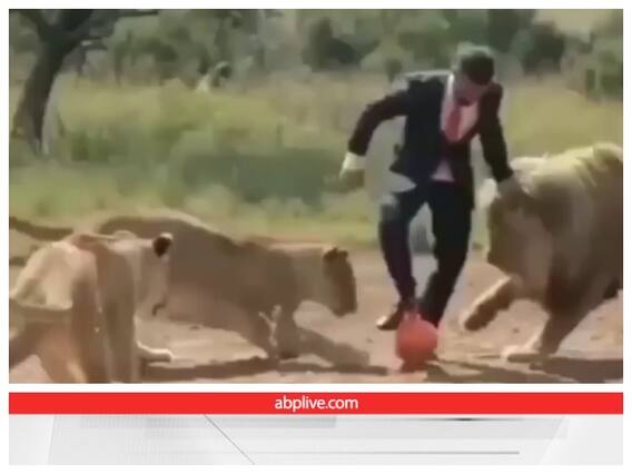 वायरल हो रही इस वीडियो में शख्स को सूट-बूट पहन कर जंगल के बीच खूंखार शेरों के बीच फुटबॉल खेलते देखा जा रहा है. जिस दौरान शेरों का दल शख्स पर हमला करने या फिर उसे चोट पहुंचाने के बजाए उसके साथ खेलते देखे जा रहे हैं. यह देख यूजर्स को अपनी ही आंखों पर यकीन कर पाना काफी मुश्किल हो रहा है.