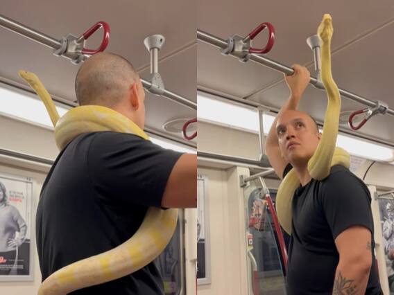 जरा सोचिए आप मेट्रो में सफर करने के लिए चढ़े हों और कोई आपके सामने सांप लेकर खड़ा हो जाए, तो आपका रिएक्शन क्या होगा? अब आप सोच रहे होंगे कि भला मेट्रो में कोई सांप लेकर कैसे चढ़ सकता है. दरअसल सोशल मीडिया पर इन दिनों एक वीडियो वायरल हो रहा है, जिसमें एक शख्स जिंदा सांप को लेकर भीड़ से भरी मेट्रो में चढ़ गया. हैरानी की बात यह रही कि सांप को देखने के बावजूद कोई भी अपनी सीट से उठकर भागा नहीं और ना ही डर के मारे चिल्लाया.