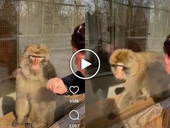 वायरल हो रहे इस वीडियो में एक आदमी को चिड़ियाघर में बंदर को मैजिक ट्रिक दिखाते हुए देखा जा सकता है. आपको ये देखकर हैरानी भी हो सकती है कि बंदर उस आदमी की मैजिक ट्रिक को बड़े ध्यानपूर्वक देख रहा होता है. जब वह आदमी अपनी ट्रिक दिखा लेता है तब ये बंदर पूरी बात को समझने में कुछ समय लगाता है और फिर वह ऐसी मजेदार प्रतिक्रिया करता है जिसे वीडियो में देखा जा सकता है.