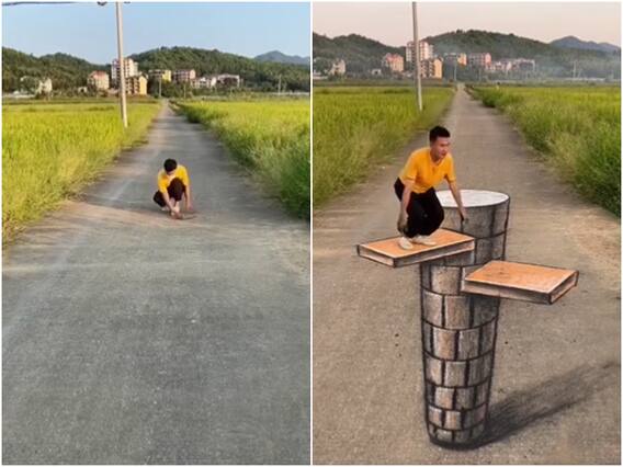 इसके बाद वो पेंटिंग पर एक टास्क भी करता है, जिससे भ्रम और ज्यादा बढ़ जाता है. आप वायरल वीडियो में देखेंगे कि इस आर्टिस्ट की कलाकारी बिल्कुल असली लगती है. पेंटिंग में बनाए गए पत्थर असली लगते हैं और ये किसी बड़े पोल जैसा लगता है. वाकई में आर्टिस्ट के हाथों में जादू है.