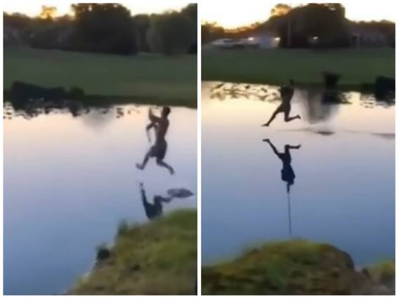 वायरल हो रही वीडियो को सोशल मीडिया के कई प्लेटफॉर्म पर शेयर किया जा रहा है. वीडियो में एक शख्स एक तालाब के पास देखा जा रहा है, जिसने की शॉर्ट्स पहने हुए हैं और पेड़ पर बंधी रस्सी को पकड़ कर तेजी से तालाब की ओर भागता है, इसके बाद वह रस्सी को पकड़े हुए तालाब के पानी के ऊपर से होते हुए एक गोल चक्कर काटने लगता है.