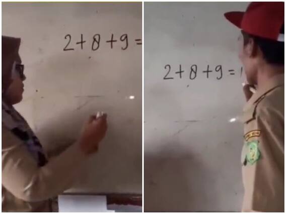 सामने आए वीडियो में आप देख सकते हैं कि बोर्ड पर सवाल है 2+8+9 कितने होते हैं. ऐसे में सवाल का सीधा का जवाब है 19 लेकिन ये इस शख्स का टोटल है 10 और इनसे अपना तरीका भी दिखाया है.