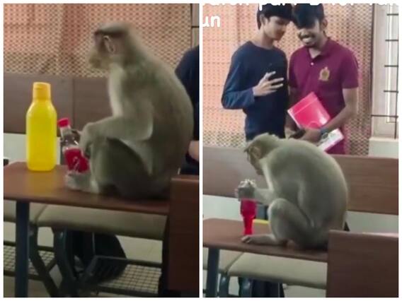 देखा आपने कैसे छात्र बंदर को पानी की बोतल खोलना सिखाता है. उससे पहले बंदर ने जैसे ही मेज में रखी बोतल को पकड़ा, बोतल जिस छात्र की है उसने उसे वापस छीन लिया. जबकि पास में खड़े एक छात्र को "भाई देदे भाई" कहते हुए वीडियो में सुना जा सकता है. इस दौरान अन्य छात्रों को हंसते हुए भी देखा जा सकता है.
