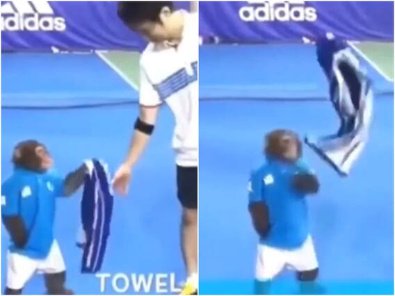 हाल ही में वायरल हुआ वीडियो (Viral Video) काफी हैरान करने वाला है. इस वीडियो में आप एक बंदर को टेनिस कोर्ट (Monkey In Tennis Court) में तौलिया लिए खड़ा हुआ देख सकते हैं. ये बंदर टेनिस खिलाड़ी को पसीना साफ करने के लिए तौलिया पकड़ाता है. इसके बाद खिलाड़ी पसीना साफ करने के बाद तौलिया वापस बंदर को पकड़ देता है.
