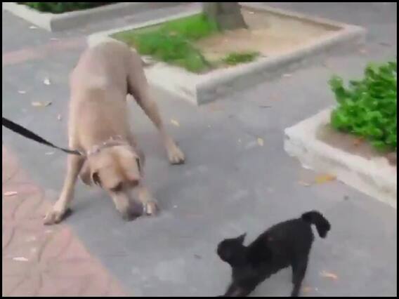 ट्विटर पर शेयर किए गए इस वीडियो (Twitter Video) में आप देखेंगे कि एक आदमी पार्क में कुत्ते को टहला रहा होता है तभी कुत्ता बिल्ली के बच्चे को सूंघने लगता है. खतरे को भांपते हुए बिल्ली कुत्ते पर अटैक कर देती है. कुत्ता बिल्ली के हमले से डर जाता है और पीछे हट जाता है.