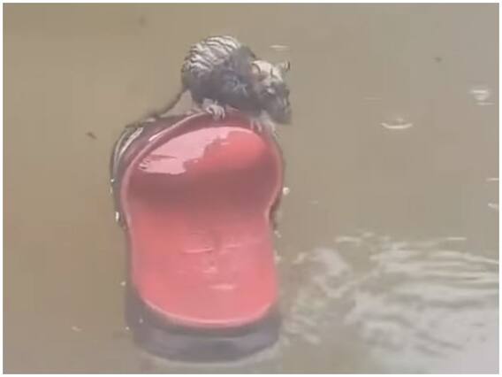 चूहे के इस वायरल वीडियो में देखा जा सकता है कि एक चूहा कैसे खुद को पानी में डूबने से बचाए हुए है. दरअसल, वीडियो को देखने पर पता चलता है कि किसी जगह पर बारिश हो रही है और पानी भी भर गया है. इस पानी में चूहा खुद को डूबने से बचाने के लिए एक चप्पल का सहारा लेता है.
