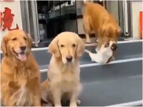 वायरल हो रहे वीडियो में आप दो कुत्तों को लाइन में खड़ा हुआ देख सकते हैं. वहीं एक कुत्ता पीछे से आ रहा होता है जिसके मुंह में बिल्ली होती है. आपको ये जानकर हैरानी होगी कि ये कुत्ता बिल्ली को फोटो क्लिक करवाने के लिए लेकर आया है. वहीं जब बिल्ली भागने लगती है, तो दूसरा कुत्ता उसे रोक लेता है और बढ़िया तरीके से फोटो (Dogs And Cat Photoshoot) क्लिक करवाता है.