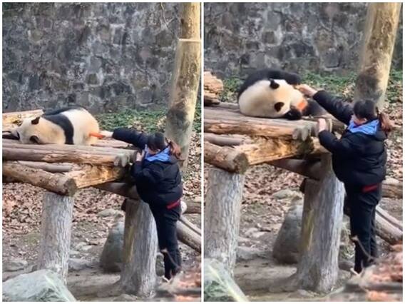 वायरल वीडियो में एक चिड़ियाघर के अंदर वहां काम करने वाले एक कर्मी को देखा जा रहा है, जो सो रहे पांडा के बाड़े में जाकर उसे जगाकर खाने के लिए कुछ ऑफर करता है, जिस पर करवट बदल कर उठते ही पांजा खाने के सामान को हाथ में लेकर अपनी मस्त लाइफ एंजॉय करना शुरू कर देता है.