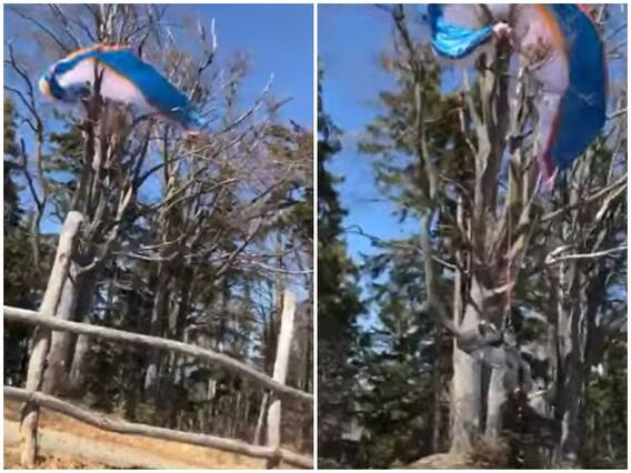 अमुमन पैराग्लाइडर हवा से बातें करने के दौरान लंबी दूरी तक बिना किसी परेशान के उड़ते देखे जाते हैं. वहीं वायरल हो रहे वीडियो में एक पैराग्लाइडर को उड़ान की तैयारी करने के दौरान आए एक तूफान की चपेट में आते देखा गया है. जिसमें देखा जा रहा है कि तुफान अचानक से आता है और जमीन पर खड़े पैराग्लाइडर को तेजी से हवा में ले उड़ता है और थपेड़े थाता हुआ शख्स पेड़ पर जा लटकता है.
