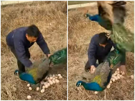 सोशल मीडिया पर इन दिनों एक वीडियो तेजी से वायरल हो रहा है, जिसमें एक शख्स को मोरनी के अंडों को चुराने की कोशिश करते देखा जा रहा है. वीडियो में आगे देखा जा सकता है कि जैसे ही शख्स मोरनी हटाते हुए उसके अंडों को चुराने की कोशिश करता है, उसी समय हवा में उड़ते हुए मोर आ जाता है और वह उस शख्स पर हमला कर देता है. वीडियो देख सोशल मीडिया पर हर कोई हैरान हो रहा है.