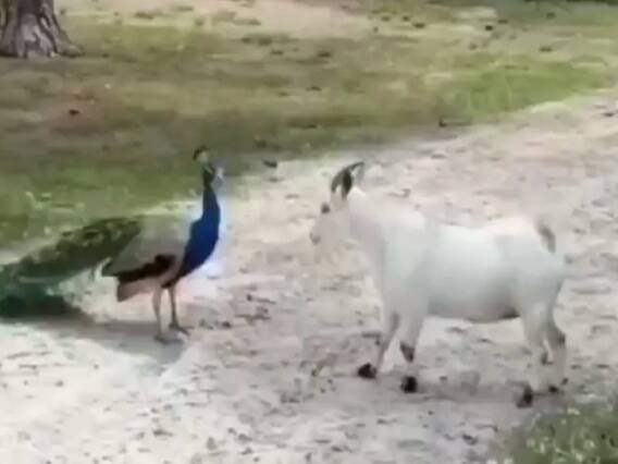 बकरी और मोर की लड़ाई का वीडियो कई सोशल मीडिया साइट्स पर शेयर किया गया है. ट्विटर पर शेयर किए वीडियो में देखा जा सकता है कि एक जंगल जैसे दिखने वाले इलाके में बकरी और मोर खड़े हुए हैं. दोनों एक दूसरे की तरफ देखते हैं. फिर ना जाने क्यों दोनों को गुस्सा आ जाता है. खासकर बकरी तो मोर के पीछे ही पड़ जाती है. बकरी मोर पर हमला कर देती है. लेकिन मोर उड़कर खुद को बचा लेता है. ऐसा कई बार होता है जब बकरी अपनी पूरी ताकत से मोर को मारने की कोशिश करती है. लेकिन सफल नहीं होती. आप भी देखिए ये वीडियो.