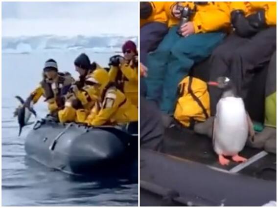दरअसल पेंगुइन के पास ही कुछ लोगों एक बोट पर सवार रहते हैं. पेंगुइन खुद को बचाने के लिए पानी से निकलकर तेजी से उस नाव पर छलांग लगा देती है और इंसानों के बीच जाकर खड़ी हो जाती है. इस दौरान वह थोड़ा सा भी नहीं घबराती और किलर व्हेल से बचने के लिए इंसानों के बीच सहज हो जाती है.