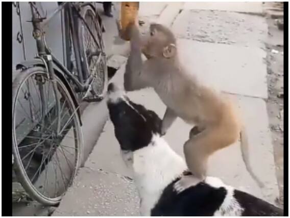 Viral Video: सोशल मीडिया पर अधिकतर कई वीडियो वायरल होते रहते हैं जिसे देखकर लोगों का खूब मनोरंजन होता है. इस बार सोशल मीडिया पर इक कुत्ते और बंदर की दोस्ती का वीडियो वायरल हो रहा है जिसे देखकर आपका दिन बन जाएगा. चोरी में एक दूसरे का साथ देते हुए बहुत लोगों को देखा होगा लेकिन किसी कुत्ते को बंदर का साथ देते हुए पहली बार देखेंगे. इस वीडियो में कुत्ता और बंदर चोरी करते हुए एक दूसरे का साथ दे रहे हैं.