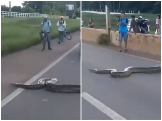 हाल ही में एक ऐसा ही वीडियो सामने आया है, जो यूजर्स को दहशत में डालते दिख रहा है. आमतौर पर कोई भी शख्स नहीं चाहेगा कि उसके आस-पास के इलाके में कोई खौफनाक सांप या फिर विशालकाय शरीर का अजगर देखा जाए. ऐसा होने पर इलाके में रहने वाले लोग दहशत में चले जाते हैं. फिलहाल सोशल मीडिया पर सामने आए वीडियो में एक विशालकाय अजगर को देखा जा रहा है. जो की सड़क पार करते नजर आ रहा है.