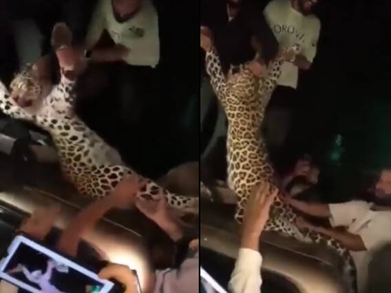 Kashmir Leopard Killed Video Viral: जम्मू कश्मीर के अनंतनाग जिले से पशु क्रूरता का एक परेशान करने वाला वीडियो सामने आया है. इस वीडियो में कुछ लोग तेंदुए के साथ अपमानजनक व्यवहार करते नजर आ रहे हैं. लोगों ने तेंदुए को पहले तो पीट-पीटकर अधमरा कर दिया. फिर कार के ऊपर बैठाकर उसके साथ खिलौने की तरह खेलने लग गए. इस दौरान आसपास मौजूद कुछ लोग खुशी से चीखते-चिल्लाते भी नजर आए. अनंतनाग से इस वीडियो के सामने आने के बाद सोशल मीडिया पर पशु क्रूरता की खिलाफ आवाजें उठने लगी हैं. लोग इस कृत्य की जमकर निंदा कर रहे हैं.