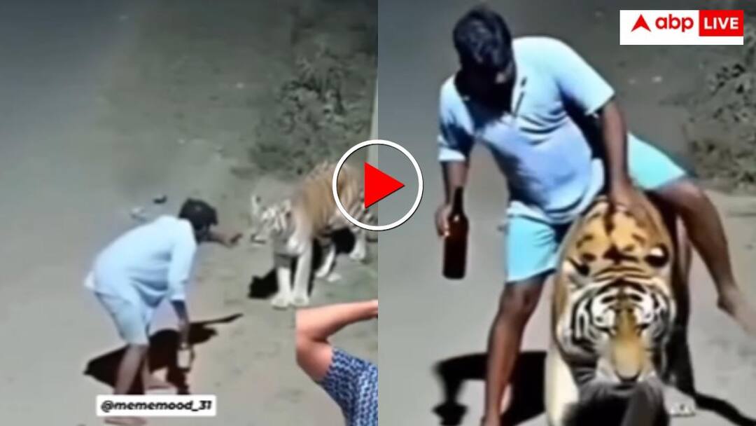 शराब के नशे में टाइगर की पीठ पर बैठा शख्स!