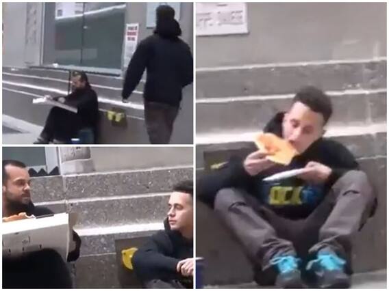 दरअसल सोशल मीडिया पर वायरल हो रहे वीडियो में एक शख्स शुरुआत में एक बेघर और गरीब इंसान के पास जाकर बैठ जाता है, जिसके बाद वह उस बेघर इंसान से उसके पिज्जा में से खाने के लिए एक स्लाइस मांगता है. जिसके बाद वह गरीब इंसान बिना कुछ सोचे समझे उस शख्स को अपने पिज्जा में से एक स्लाइस दे देता है.