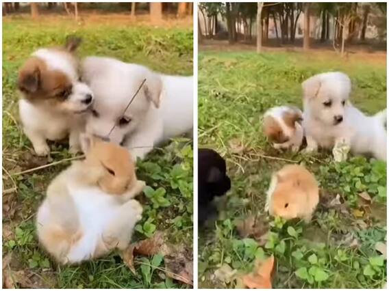 Trending News: आपने ऐसे कई वीडियो देखे होंगे जिसमें जानवरों की अलग प्रजातियों को आपस में प्रेम से रहते देखा होगा. इन दोनों सोशल मीडिया पर ऐसे कई वीडियो मिल जाएंगे जिनमें जानवर आपसे में बड़े ही प्रेम से साथ खेलते दिख जाएंगे. हाल ही में एक वीडियो सोशल मीडिया पर सामने आया है. जिसमें कुत्ते के पिल्लों को एक खरगोश के बच्चे के साथ मस्ती करते देखा जा सकता है.