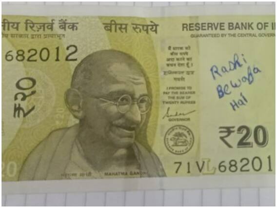 दरअसल सोशल मीडिया पर एक 20 रुपए का नोट तेजी से वायरल हो रहा है, जिस पर 'राशी बेवफा है' लिखा है. जो कि इससे पहले सोशल मीडिया पर कई दिनों तक सुर्खियां बटोर चुके 'सोनम बेवफा है' की याद दिला रहा है. हर कोई राशी को सोनम से जोड़ कर देख रहा है तो वहीं कई यूजर्स राशी को कोकिलाबेन के रसोड़े से जोड़ रहे हैं.