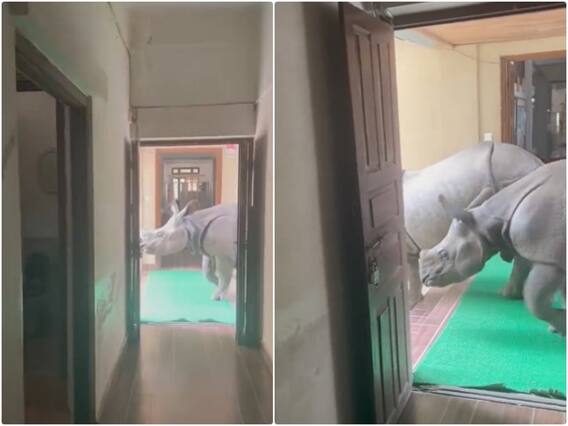 Shocking Viral Video: सोशल मीडिया पर हाल ही में कुछ हैरतअंगेज वीडियो की भरमार देखी गई है. जिन्हें देखने के बाद यूजर्स के माथे पर पसीने निकल आए हैं. ऐसा ही एक वीडियो इन दिनों सोशल मीडिया पर तेजी से वायरल हो रहा है, जिसमें घर के बाहर विशालकाय गेंडे को देख यूजर्स सकते में आ गए हैं. घर के बाहर इतने खतरनाक जीव को देख किसी के भी पैरों तले से जमीन खिसक सकती है.
