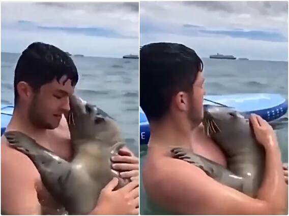 हाल ही में एक समुद्र तट के किनारे ऐसा ही नजारा देखने को मिला. जब एक शख्स समुद्र की लहरों में तैरते देखा गया. इसी दौरान एक समुद्री जीव को शख्स के पास आने के बाद उसे गले लगाते देखा जा सकता है. जिसे देखने के बाद हर किसी का मुंह खुला का खुला रह गया है. यहीं कारण है कि कई यूजर्स इस वीडियो को सोशल मीडिया पर शेयर करने के साथ ही लूप में देखने को मजबूर हो रहे हैं.