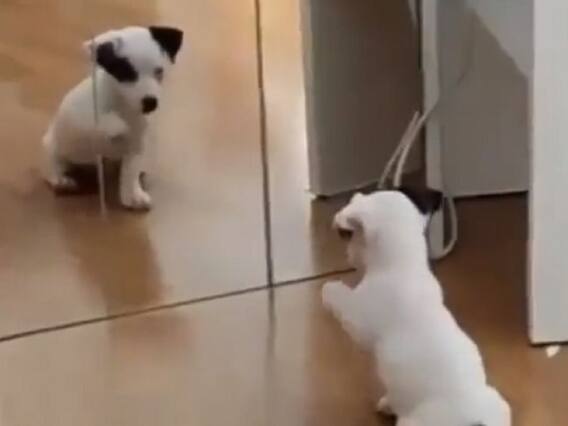 सफेद रंग का एक प्यारा सा डॉगी पहले तो शीशे को कुछ देर तक देखता रहता है और फिर शीशे के सामने ही बैठ जाता है. शीशे में अपने जैसे दूसरे कुत्ते को देखकर उसका दिमाग चकराने लगता है. इसके बाद वह उस कुत्ते की तरफ अपना हाथ बढ़ाता है, वह दो तीन बार ऐसा करता है. इसके बाद वह अपना दूसरा हाथ उसकी तरफ बढ़ा देता है. वह देखता है कि शीशे में बैठा कुत्ता भी बिल्कुल उसी की तरह हरकत कर रहा है और उसकी नकल उतार रहा है. यह देखकर वह कुत्ता आग बबूला हो जाता है और भौंकना शुरू कर देता है.
